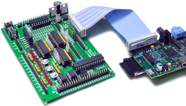 Tout d’abord la carte d’extension « non officielle » du Raspberry Pi, la GertBoard, créée par Gert van Loo. D’après le site de la Fondation, « … elle est simplement développée et produite par quelqu’un qui est au cœur de la Fondation… ».