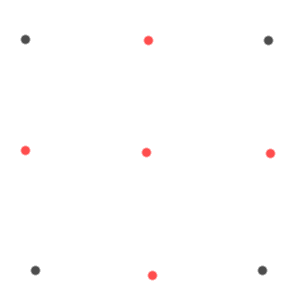 Le réglage de la hauteur de buse est classique sur ces modèles : on intercale une feuille de papier A4 80g/m2 entre la buse et le plateau. Là encore le réglage est pifométrique, la feuille doit coulisser avec un frottement. Aucun frottement, il y trop d’écart entre buse et plateau. Feuille bloquée ou frottement important : L’écart est insuffisant. Il faut faire ce réglage dans un premier temps en plaçant la buse au dessus des vis de réglage (ça correspond aux points noirs sur l’image ci-dessous mais on n’est pas au mm près, hein !). Refaites le réglage plusieurs fois car la modif d’un réglage change les autres…