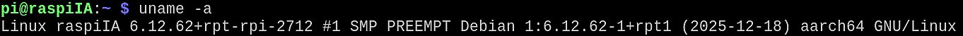 On a une bonne base de départ : Debian 13 trixie, kernel 6.12 rpi, aarch64. On peut continuer…