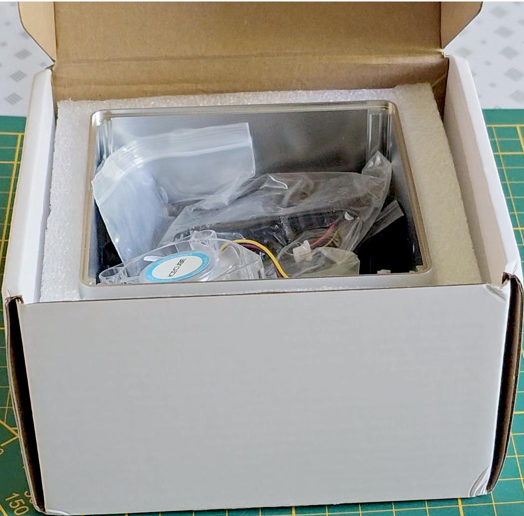 Le boîtier est livré dans une boîte en carton épais. Il a été un peu malmené pendant le transport mais la mousse intérieure a bien protégé l’ensemble.