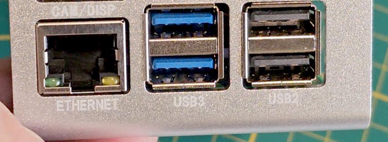 Les différentes prises sont bien repérées sur le boîtier. Sur ce boîtier une fente est prévue pour une nappe CSI ou DSI, si vous utilisez une caméra ou un écran LCD connecté directement sur le Raspberry Pi 5.