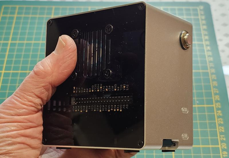 Côté connectique, on trouve les deux HDMI et l’alimentation. Ici pas de carte supplémentaire pour passer les HDMI au format « normal ». La réduction du prix du boîtier passe par l’utilisation directe des prises du Pi 5.