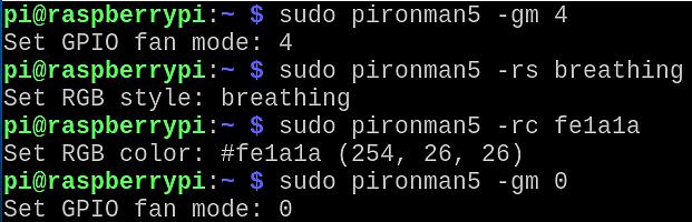Le contrôle via la ligne de commande (pironman5 -re,-rc, etc.) reste identique.